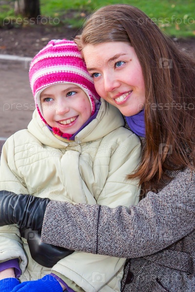 Молодая мать гуляет с красивой дочерью в парке