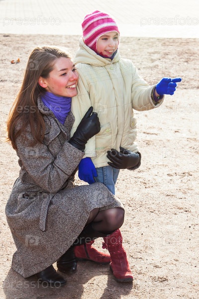 Молодая мать гуляет с красивой дочерью в парке