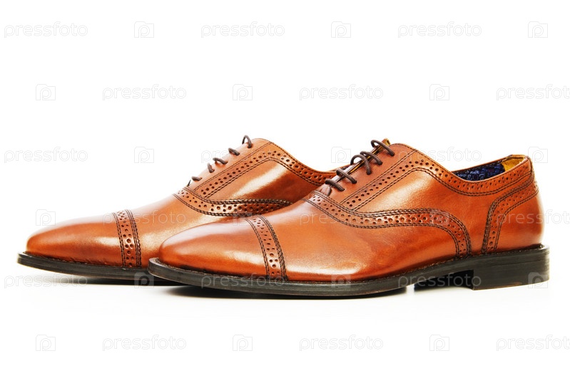 Коричневые мужские туфли на белом фоне