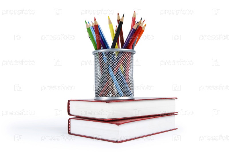 Карандаши в стакане на книгах