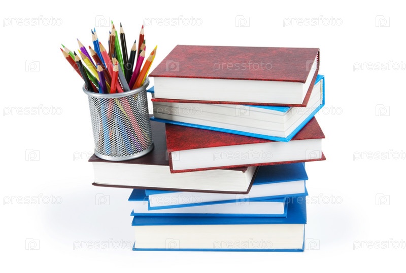 Карандаши в стакане на стопке книг