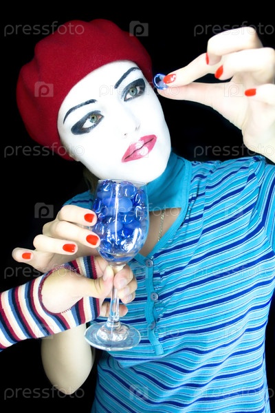 Портрет девочки-мимы на черном фоне