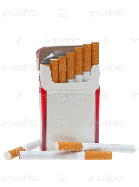 Пачка сигарет на белом фоне