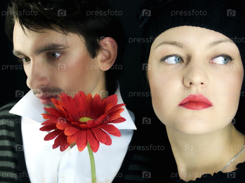 Любящая пара с красным цветом