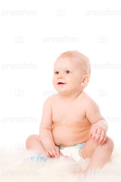 Голенький малыш на белом фоне
