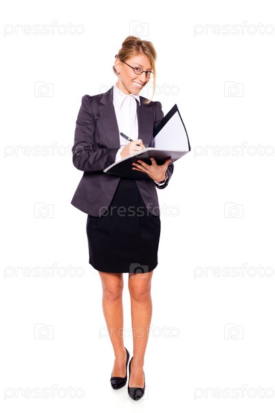 Портрет деловой женщины в костюме на белом фоне