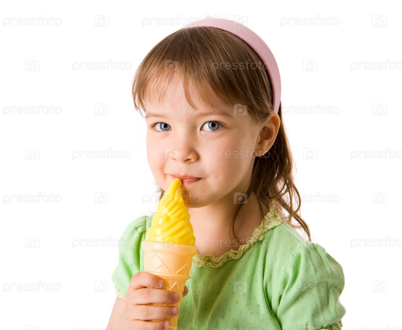Девочка с мороженым на белом фоне