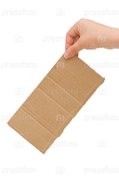Картон в руке, изолированный на белом фоне
