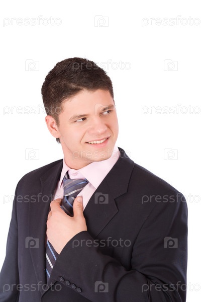 Портрет молодого предпринимателя в деловом костюме на белом фоне