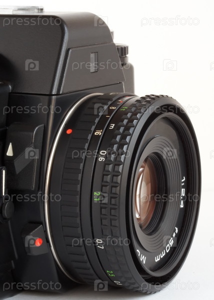 Ключевое изображение винтажной зеркальной камеры SLR на белом фоне