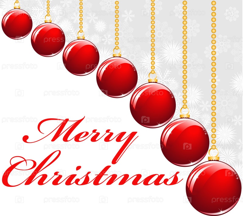 Красные елочные шары висят на золотых бусинках