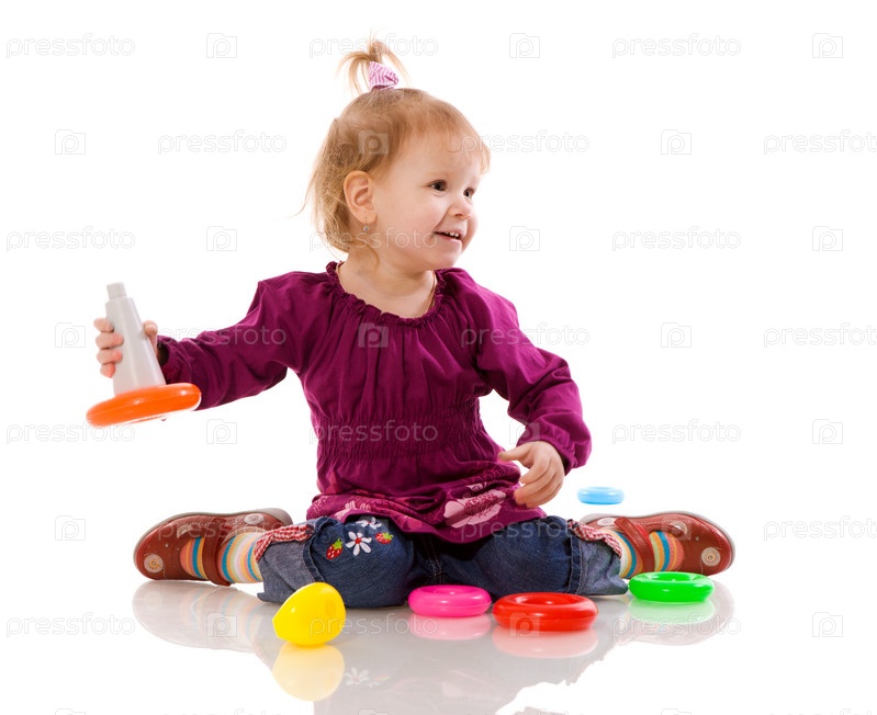 Маленькая девочка играет на белом фоне