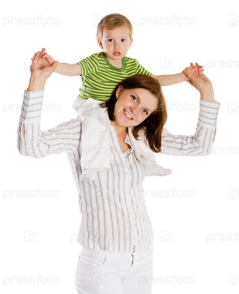 Мать с сыном на белом фоне