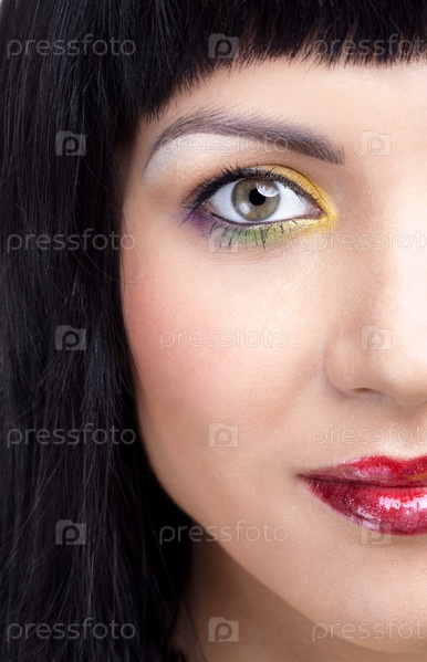 Портрет красивой девушки с ярким макияжем. Половина лица