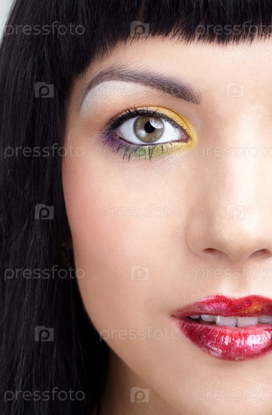 Портрет красивой девушки с ярким макияжем. Половина лица