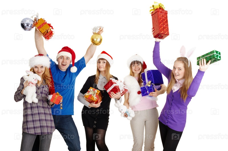 Счастливые люди с новогодними подарками