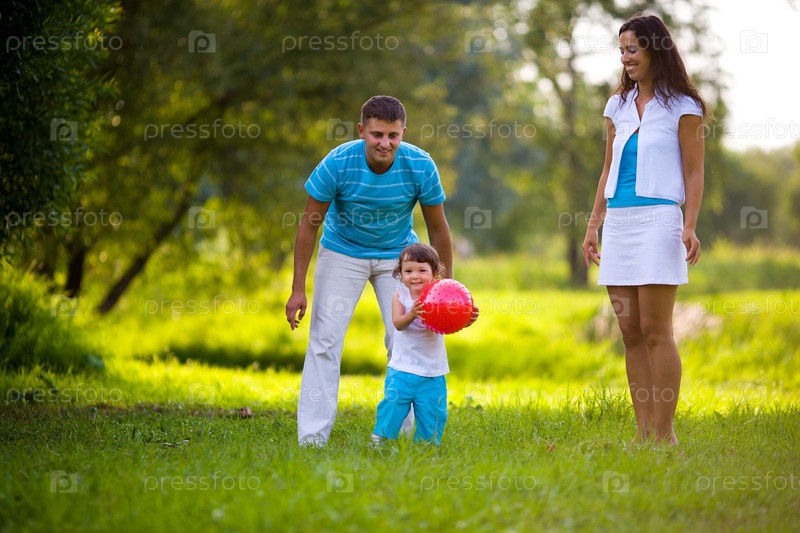 Счастливая семья летом на открытом воздухе