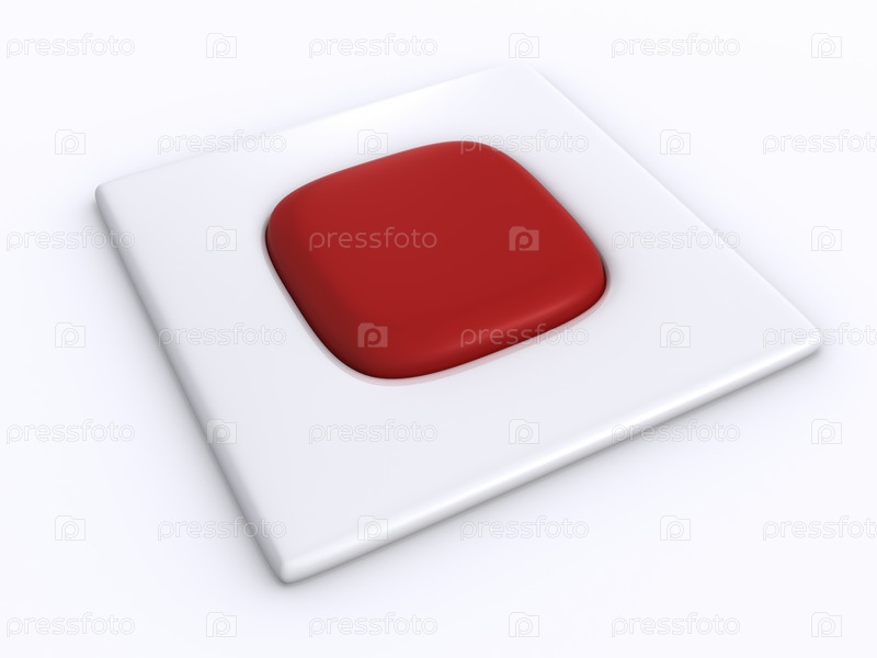 Красная кнопка в крупном плане на белом фоне, 3D