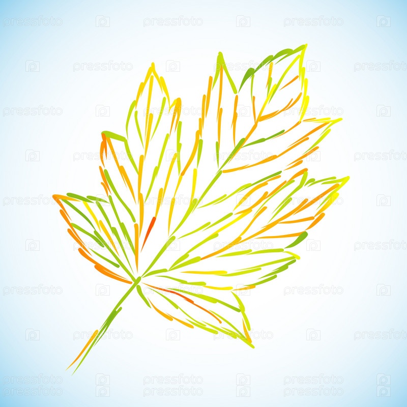 Изображение осеннего кленового листа на бело-голубом фоне