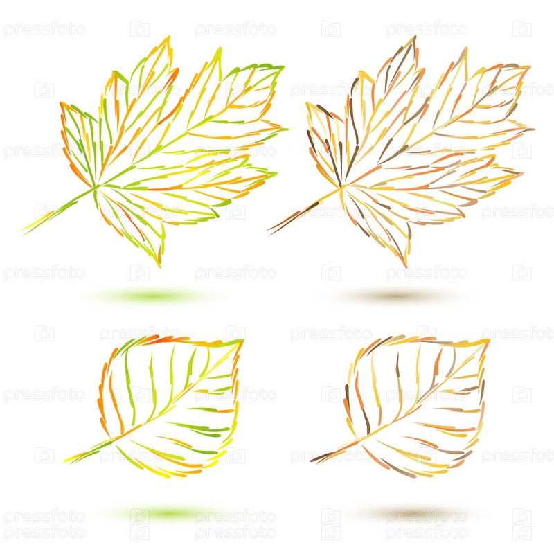 Кленовые и липовые листочки на белом фоне