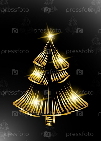 Яркая желтая елка на черном фоне