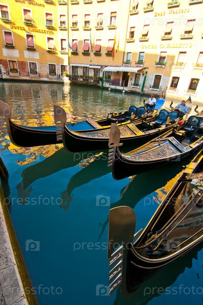 Венеция. Италия. Гондолы на канале