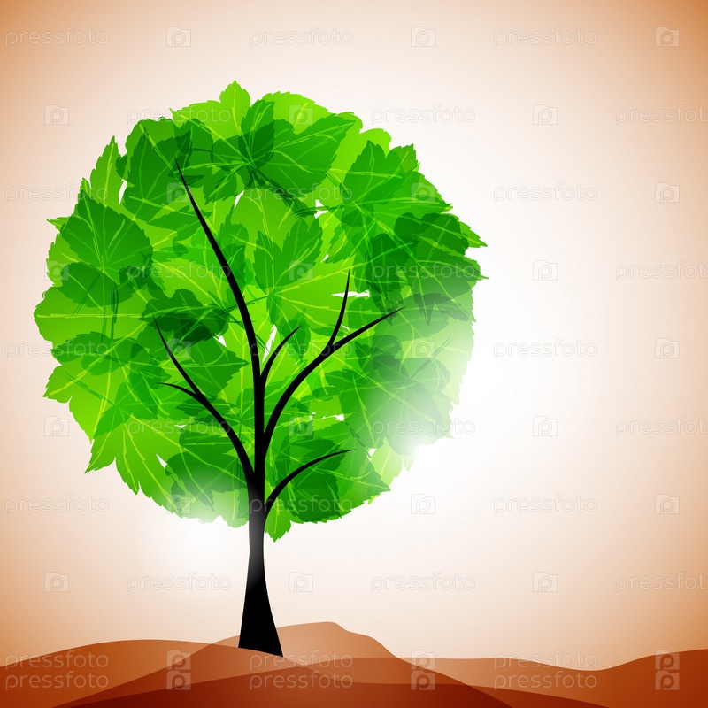 Зеленое дерево на фоне коричневого неба