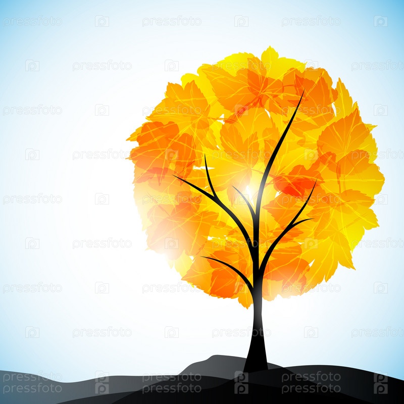 Оранжевое дерево на фоне голубого неба