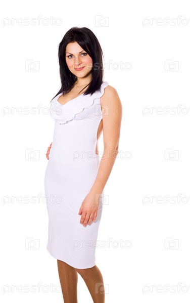 Красивая брюнетка в белом платье