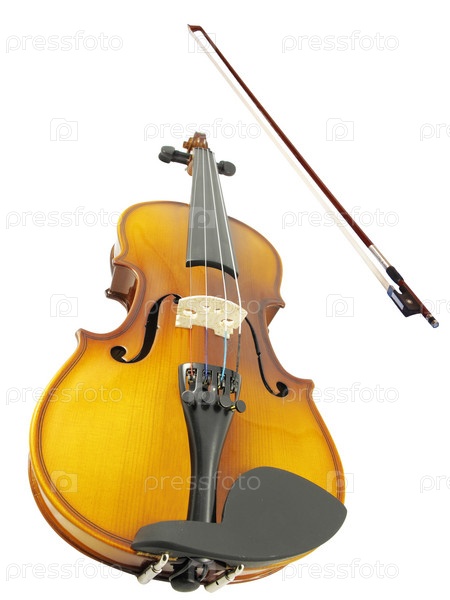 Скрипка со смычком на белом фоне