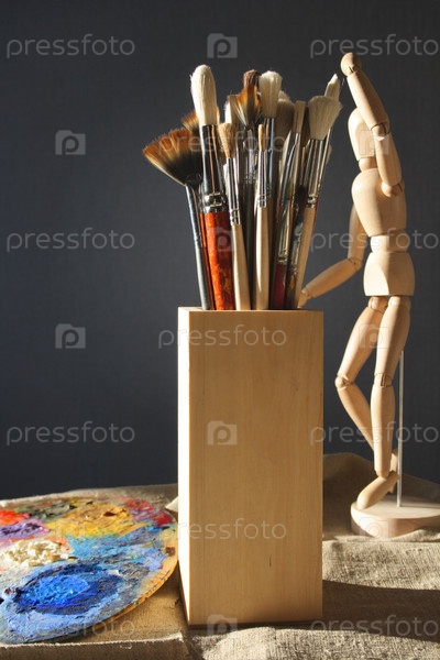 Кисти и палитра крупным планом