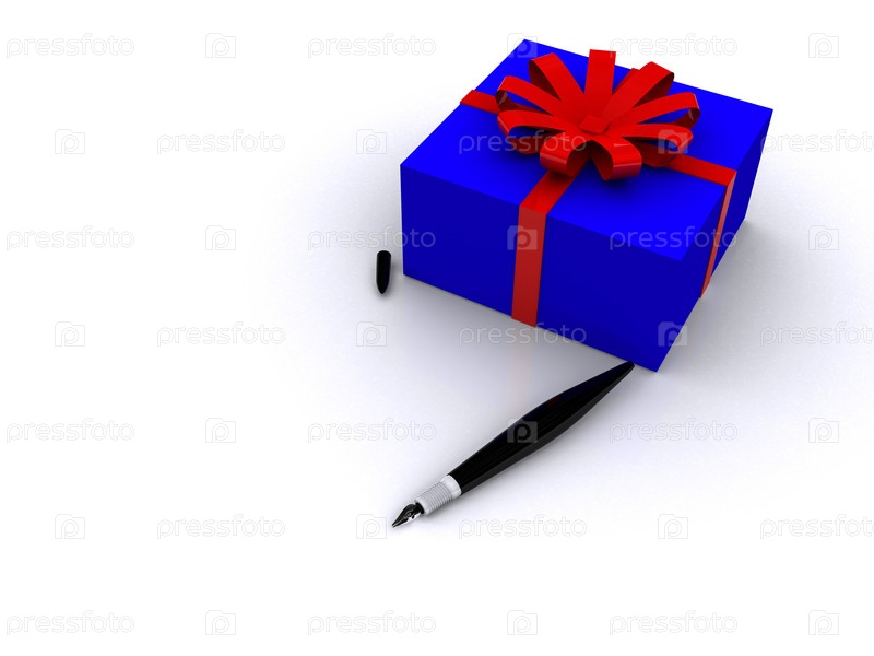Рождественский подарок и перо на белом фоне