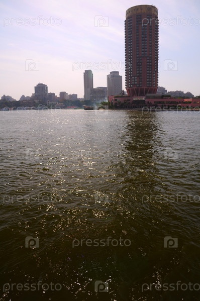 Небоскреб на берегу моря на фоне неба