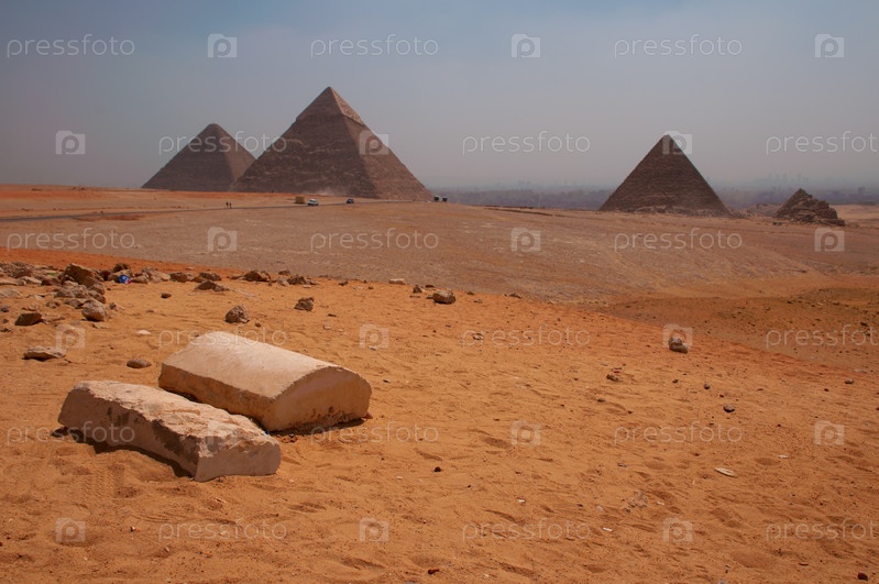 Вид на пирамиды Хефрена, Микерина и Хеопса в Египте