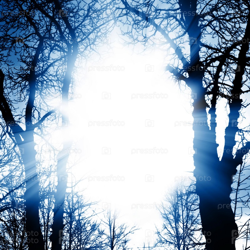 Яркий солнечный свет между деревьев