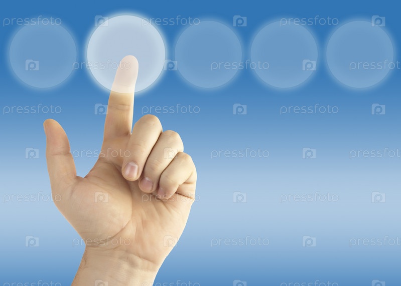 Нажатие на сенсорную кнопку на голубом фоне