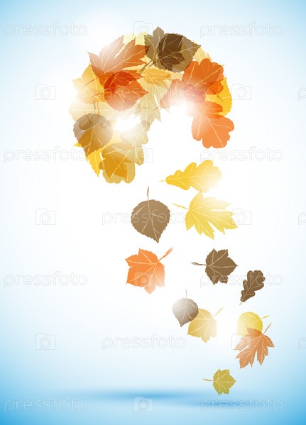 Осенняя композиция: шар из осенних листьев, постепенно распадающийся на отдельные листочки