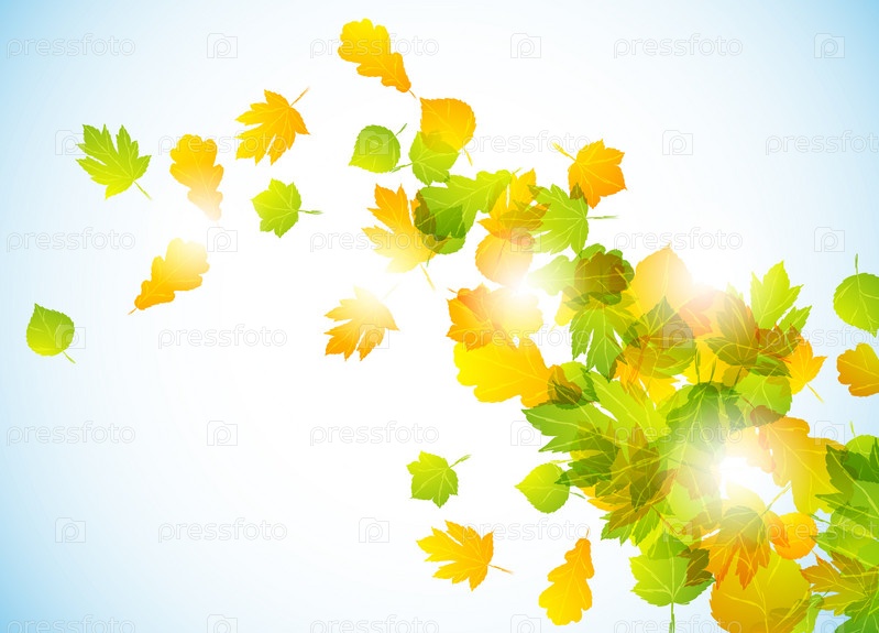 Осенняя композиция из желтых и зеленых листьев