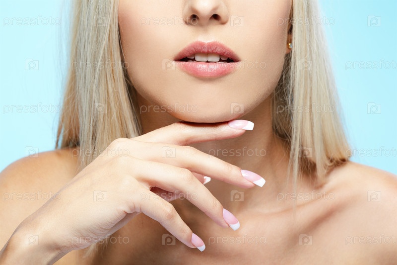 Нижняя часть женского лица и ухоженные пальцы с маникюром