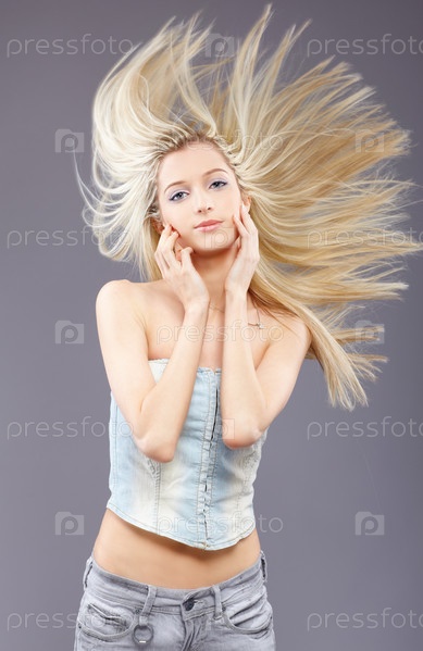 Красивая блондинка с развевающимися волосами