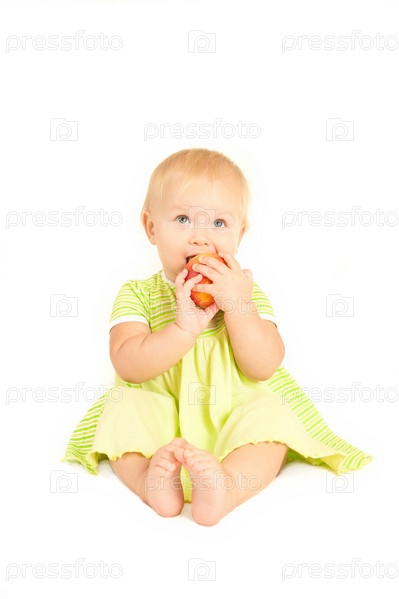 Маленькая девочка есть персик