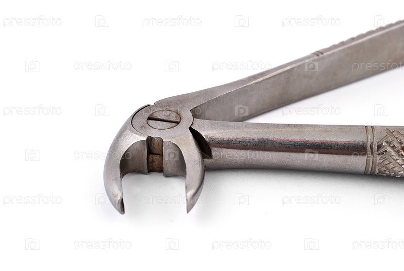 Старые стоматологические щипцы на белом фоне