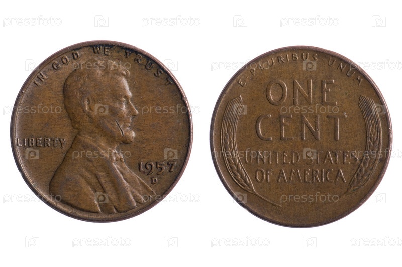Старые монеты Америки на белом фоне