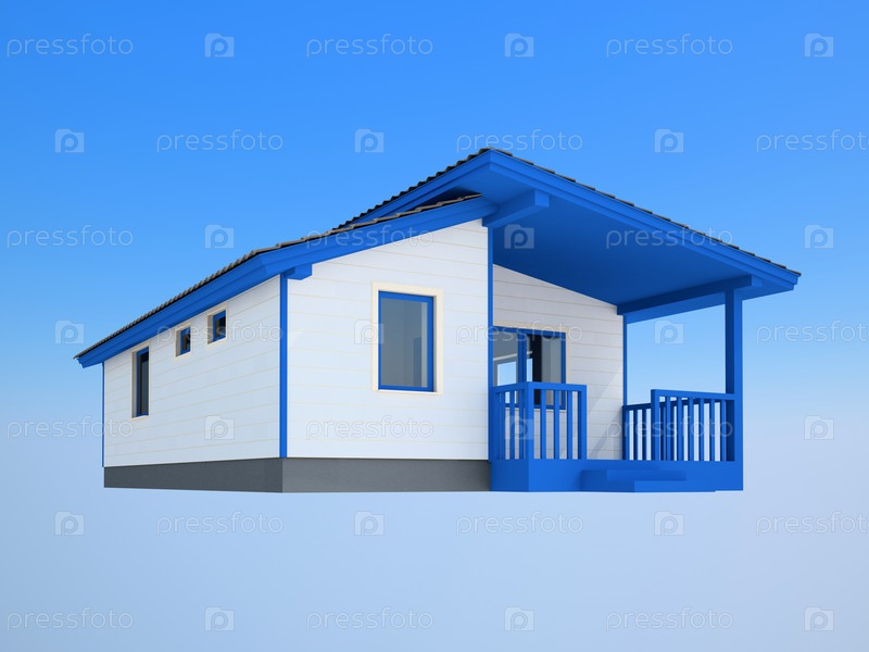 Небольшой белый домик с синим крыльцом