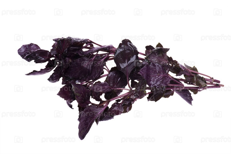 Ветка базилика на белом фоне