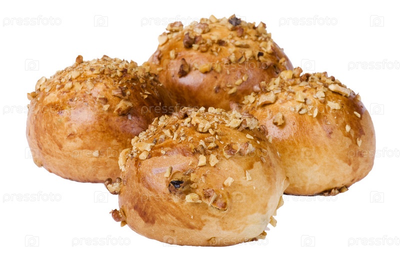 Булочки с орехами на белом фоне