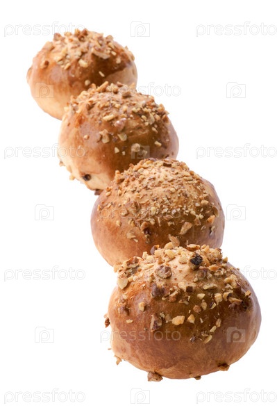 Булочки с орехами на белом фоне