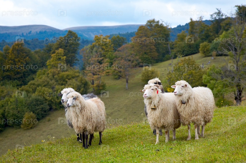 Стадо овец на горном пастбище