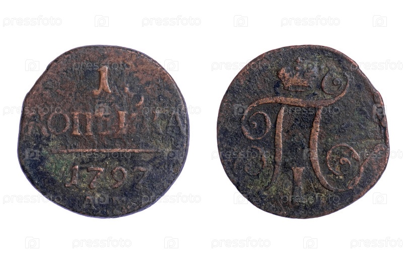 Старые монеты императорской России на белом фоне