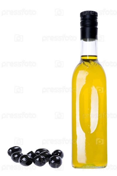 Бутылка оливкового масла на белом фоне